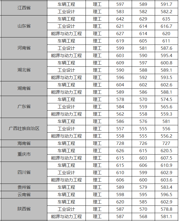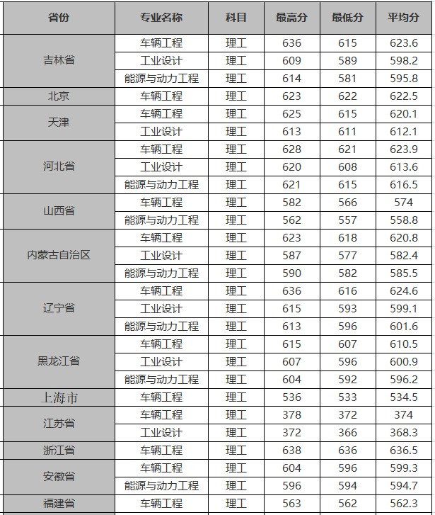 2018年本科专业各省录取分数线