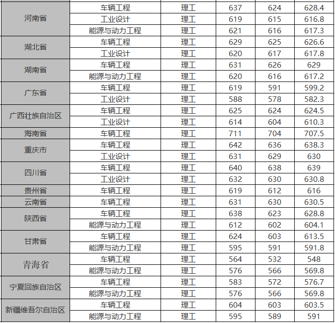 2018年本科专业各省录取分数线
