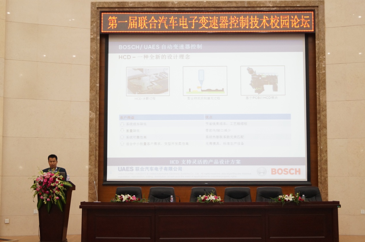 9月14日,由beat365亚洲体育官方网站和联合电子有限公司承办的“第一届联合汽车电子变速器控制技术校园论坛”在beat365官网南岭校区仿生楼一楼报告厅顺利举行。