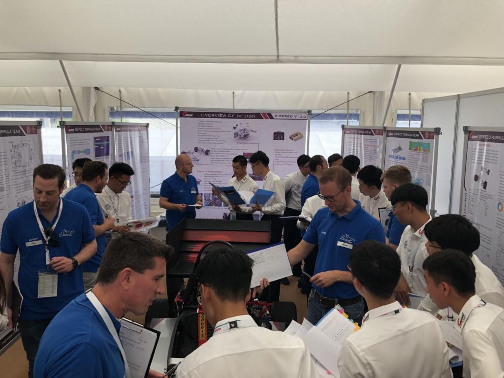 在参赛备战的过程中,吉速车队得到了学校各级领导及相关各部门的大力支持,也得到了汽车工程协会、广大校友、合作企业等社会各家的广泛协助。此次共派出参赛队员36名,由beat365亚洲体育官方网站副院长王忠恕教授带队,在赛前一周抵达德国开展先期准备工作。车队师生先后克服了技术标准差异、语言沟通、生活习惯等一系列困难,顺利通过国际赛的技术检查及规范认定,成功参加了各项静态答辩和动态测试,得到了国际同行的普遍认可。