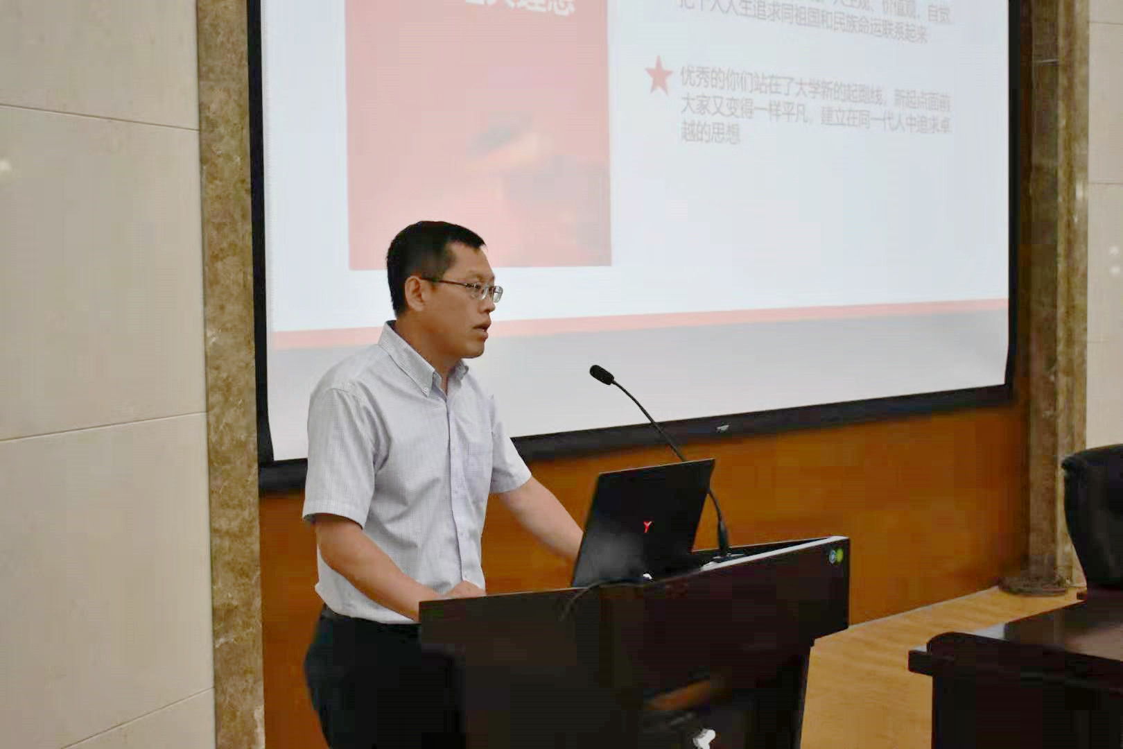 9月4日,在南岭校区仿生楼报告厅,beat365亚洲体育官方网站党委书记李善兴为全体新生上第一堂党课,勉励新入学学生坚定理想信念,展现青春力量。
