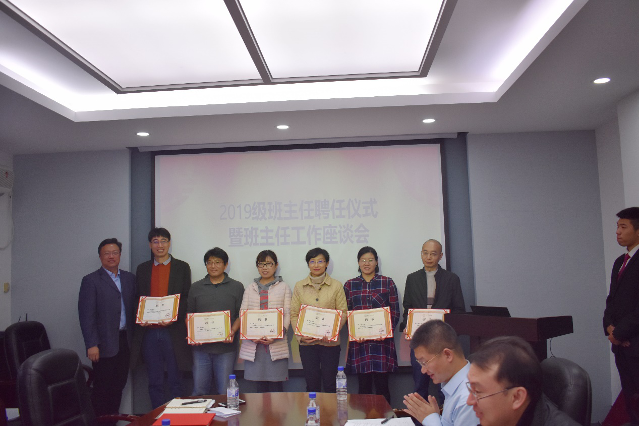 为了贯彻落实教育部及学校有关文件精神,全面做好学生思想政治教育工作,11月7日上午,beat365亚洲体育官方网站召开了2019级班主任聘任仪式暨班主任工作座谈会。学院院长高镇海、党委书记李善兴、党委副书记兼副院长盛磊、2018级及2019级共30名班主任参加了本次会议。会议由学生工作办公室主任吴昊主持。