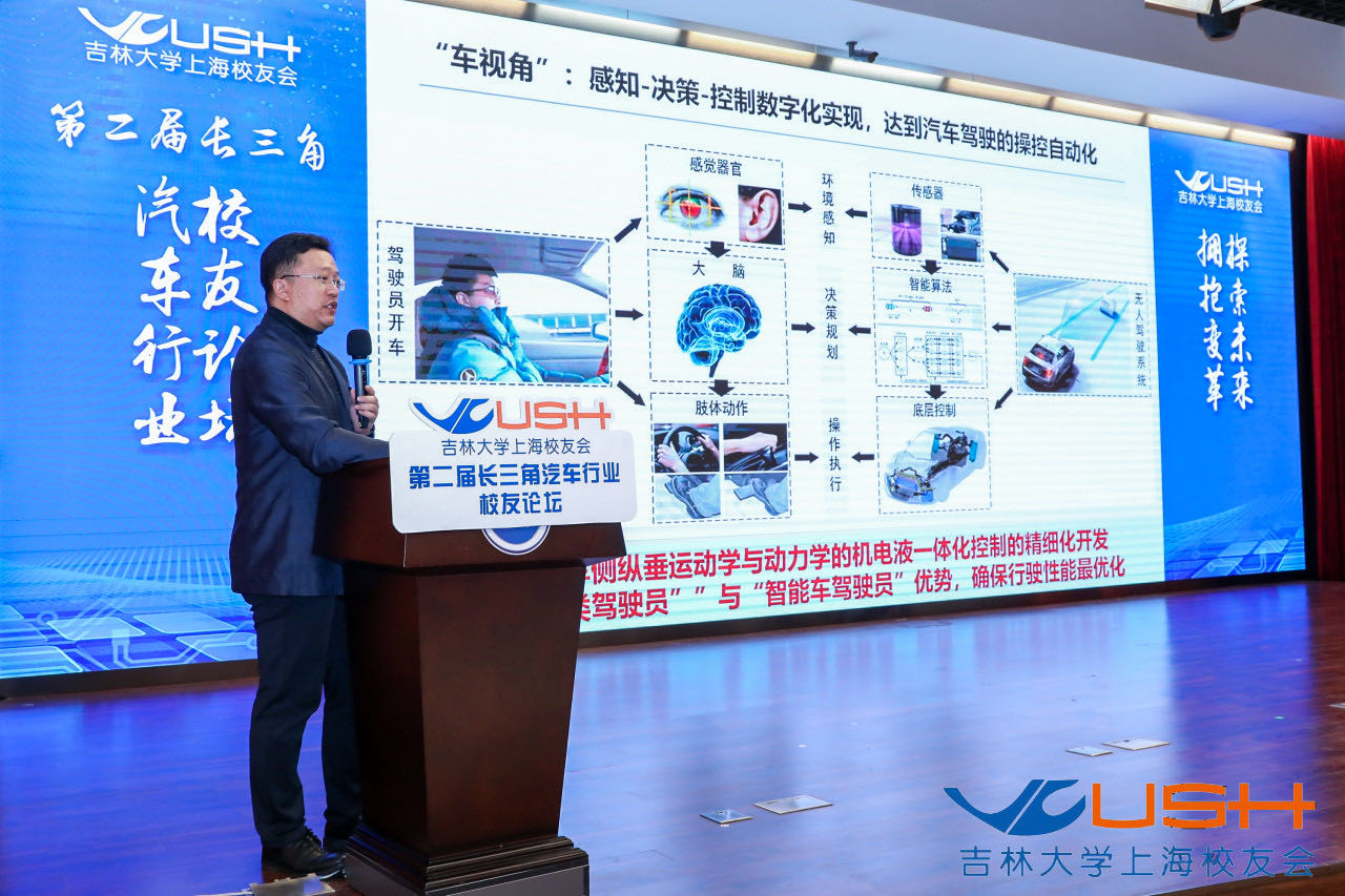论坛上,高振海院长以《人工智能时代下高校汽车学科的探索与实践》为题发表了演讲,详尽阐述了汽车学科在新时代新变革的情况下该如果创新教学体系,培养更加优秀的汽车人才。随后,来自不同专业领域的四位行业精英,全国乘用车联合会秘书长崔东树校友、爱驰汽车CTO兼技术中心总经理王东晨校友、上汽乘用车公司电子电器部总监张海涛校友、上海复星高科技(集团)有限公司汽车科技集团总裁王立普校友也分别进行了演讲。