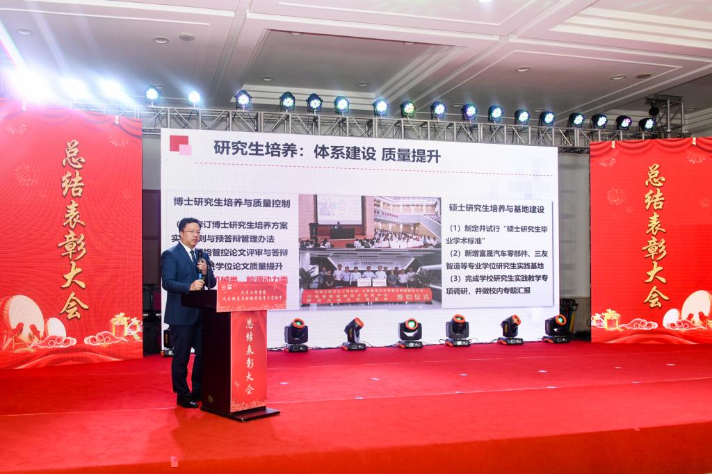 总结表彰大会由副院长林海兰主持。党委书记李善兴宣读了2019年度beat365亚洲体育官方网站、汽车仿真与控制国家重点实验室关于对获得优秀共产党员,优秀党务工作者,先进党支部,“师德标兵”先进个人,“三育人”工作先进个人,获得省级教改项目、省级优秀博士论文指导教师等奖项的教学先进个人,获得科研到款前十名、论文专利综合排名前十、国家自然基金获得者、省级科技成果和荣誉称号的科研先进个人等共计102人次的表彰决定。学院和重点实验室的领导分别为获奖教师颁发荣誉证书。高振海院长代表党政领导班子从学院党建工作、学科发展、科学研究、人才培养、学生工作、对外交流等方面总结了工作中的成绩,并就2020年的工作进行了展望和部署。高院长提到,新的一年学院将以本科教学为重点,加强一流学科建设,着重培养一流人才,提升科研能力,凝心聚力,共赢未来。会议最后,高院长代表学院向全体教职工送上了新年祝福。