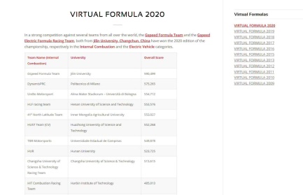 VI-Grade杯世界虚拟大学生方程式竞赛始于2009年,由世界知名的汽车系统动力学仿真模拟软件服务商VI-Grade公司主办。本届世界虚拟大学生方程式竞赛的参赛规模空前庞大,共有来自十余个国家的135支队伍参加,其中包括都灵理工大学、米兰理工大学、博洛尼亚大学等诸多世界知名高校,我国的同济大学、湖南大学、哈尔滨工业大学等院校也参加了此次比赛。