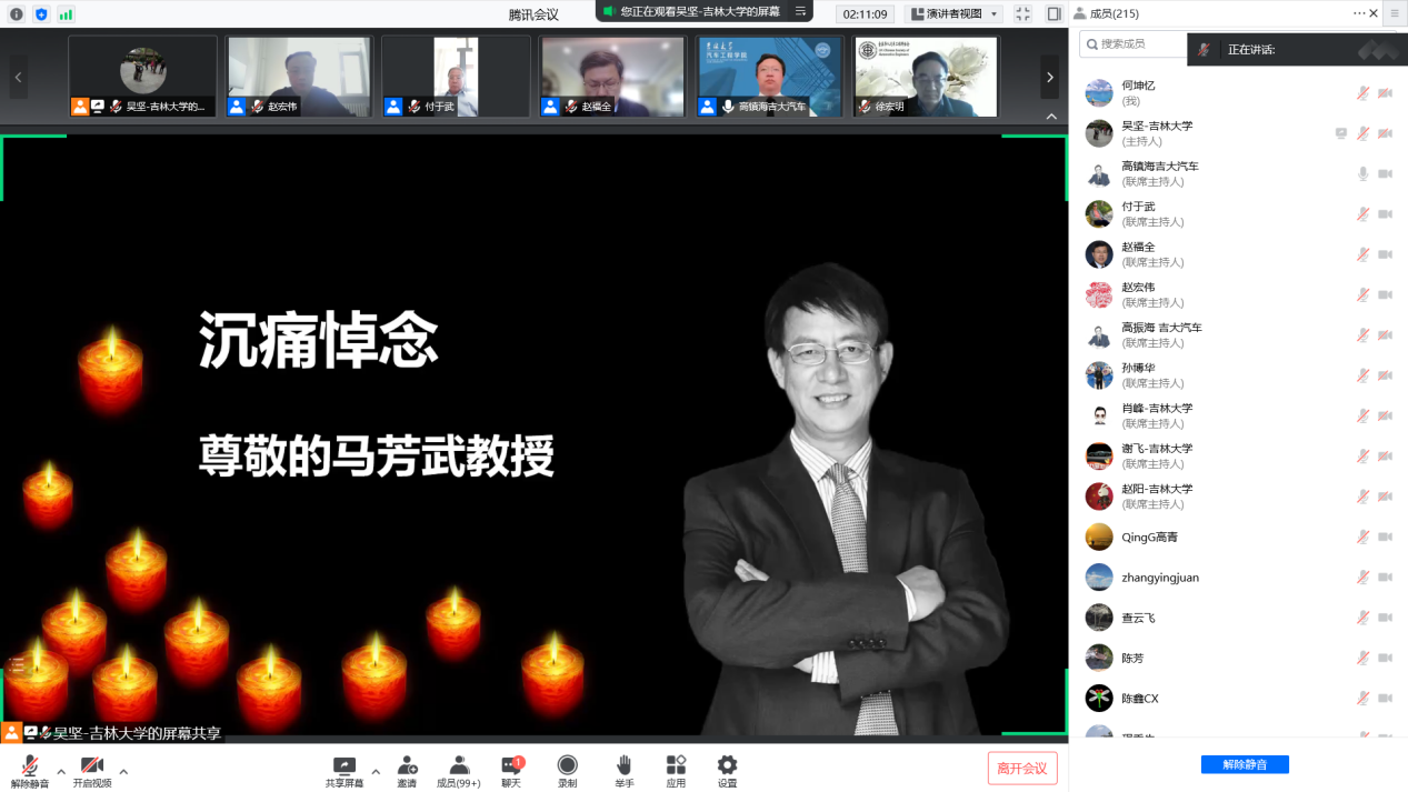 最后,院长高振海总结发言,“斯人已逝、精神长存。马老师把自己的一生都献给了中国汽车科研和教育事业。希望我们能够发扬与传承他的科学精神和报国情怀。追思、缅怀、蓄力拼搏。”追思会结束,参会的人迟迟不肯离去。