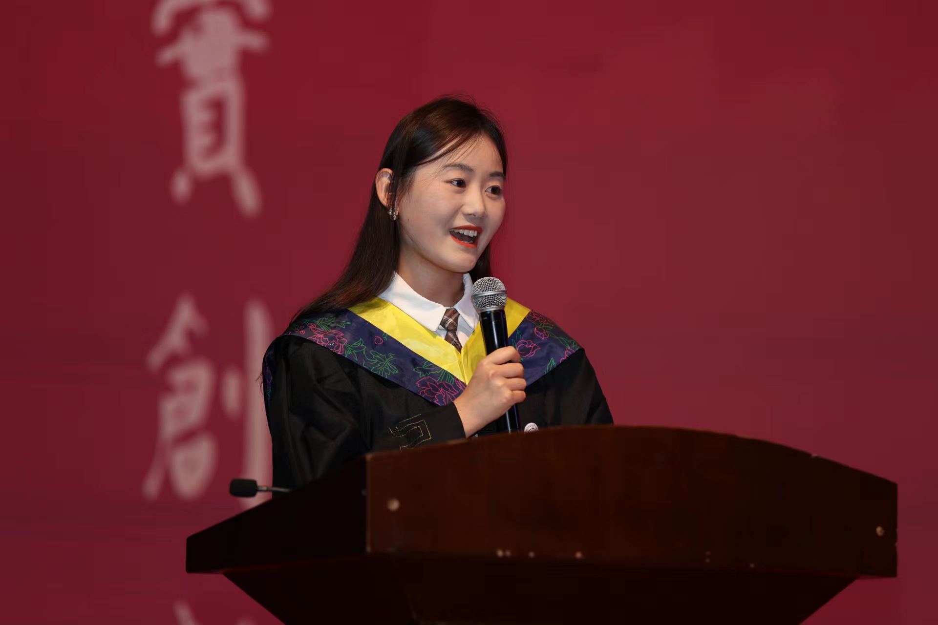毕业生代表2023届车身工程专业、博士研究生陈沈同学和2023届车辆工程专业张馨雨同学依次发言。他们感恩学院的悉心培养和老师的谆谆教诲,怀念和同学们同窗岁月,他们表示将继续发扬“求实创新,励志图强”的精神,不负韶华,不负母校的期待,为中国汽车的腾飞不断贡献力量。