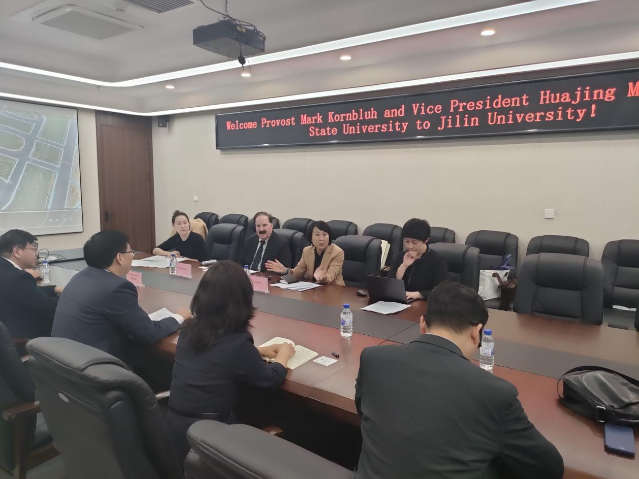10月24日,美国韦恩州立大学教务长、常务副校长马克·科恩布鲁和国际合作副校长修华静来访beat365亚洲体育官方网站并座谈交流。beat365亚洲体育官方网站国际合作与交流处副处长白茵、交流与学生项目管理科科长刘爽,beat365亚洲体育官方网站党委书记黄忠华、副院长胡兴军,各系相关老师参加了座谈。座谈会由副院长胡兴军主持。