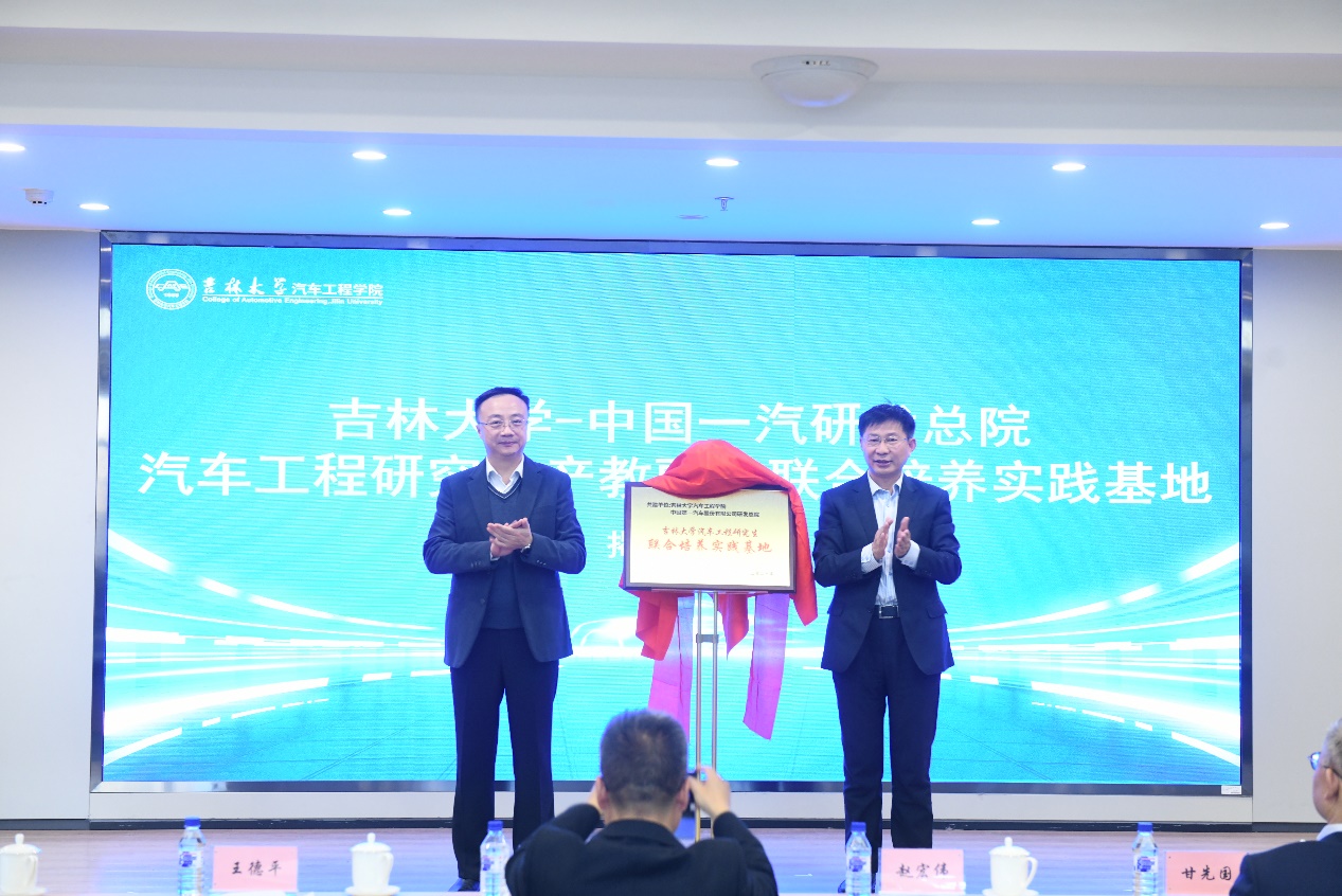 接着,赵宏伟校长与王德平院长为吉林省博士生工作站与汽车工程研究生产教融合联合培养实践基地揭牌。联合培养实践基地和省级博士生工作站的建立,标志着校企双方在人才培养方面迈出了重要的一步,是深入贯彻落实习近平总书记关于“培养大批卓越工程师”的重要指示精神的具体行动。仪式上,高镇海教授指出,beat365亚洲体育官方网站将与一汽研发总院一道,本着“优势互补、强化特色、打造品牌、互惠共赢”的原则,携手走出质量更高、效益更好的发展新道路,开拓结构更优、优势充分释放的合作新局面,打造校企服务区域经济社会发展的新亮点,为国家的汽车工业发展做出更大的贡献。