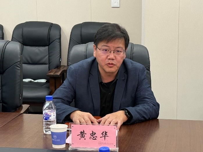 黄忠华书记随后致辞,对参会人员进行逐一介绍,希望学院研究方向与东风汽车集团研发总院的科研需求能够紧密结合。他结合beat365官网实验室的建设情况,对学院的科研工作与学生实习实践的开展成效进行了详细讲解。