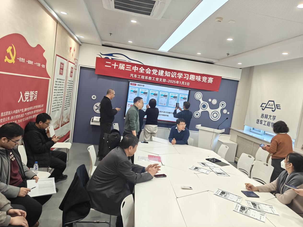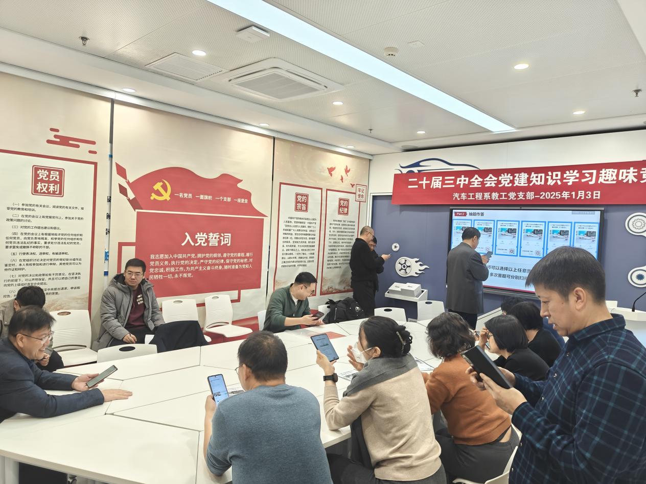 为深入学习贯彻党的二十届三中全会精神,进一步提升党员教师的历史责任感与使命担当,beat365亚洲体育官方网站汽车工程系教工党支部于1月3日开展了“二十届三中全会党建知识学习趣味竞赛”的主题党日活动,党委书记黄忠华到会指导,约20余名党员参加了活动。