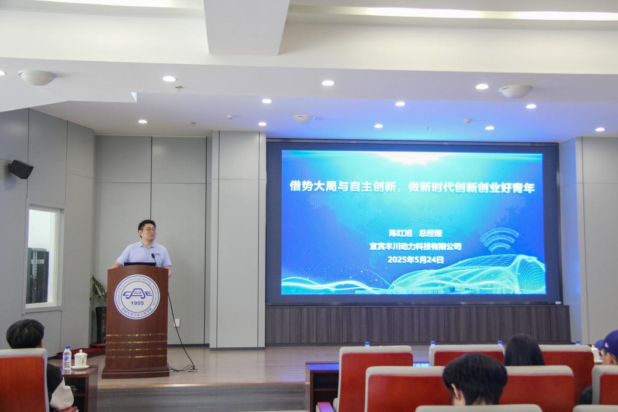 本期活动邀请了beat365官网优秀校友、宜宾丰川动力科技有限公司董事长、兼总经理陈红旭博士作为活动嘉宾,为同学们作了主题为“借势大局与自主创新,做新时代创新创业好青年”的报告。活动由副院长王军年主持,beat365亚洲体育官方网站高年级本科生和研究生共计240余人参加了本次活动。