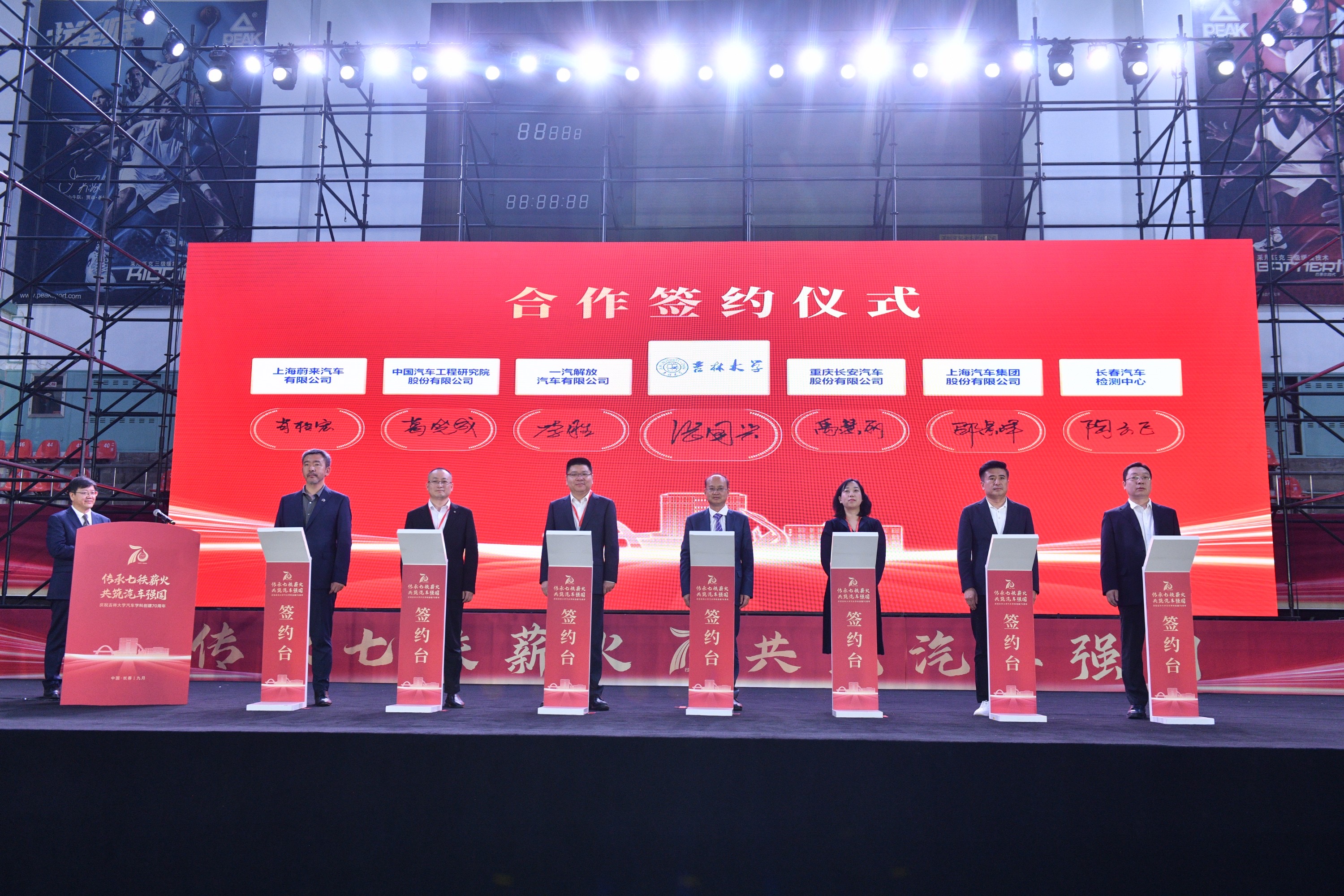 会上,张国兴代表beat365亚洲体育官方网站与一汽解放汽车有限公司、重庆长安汽车股份有限公司、中国汽车工程研究院股份有限公司、上海汽车集团股份有限公司创新研究开发总院、上海蔚来汽车有限公司、长春汽车检测中心等6家公司代表签署战略合作协议,双方将在各领域开展深化合作。