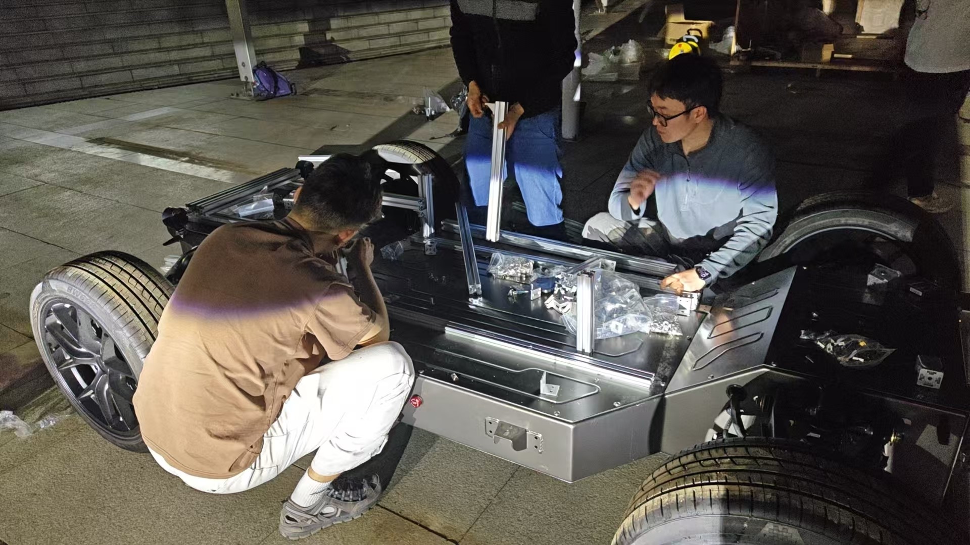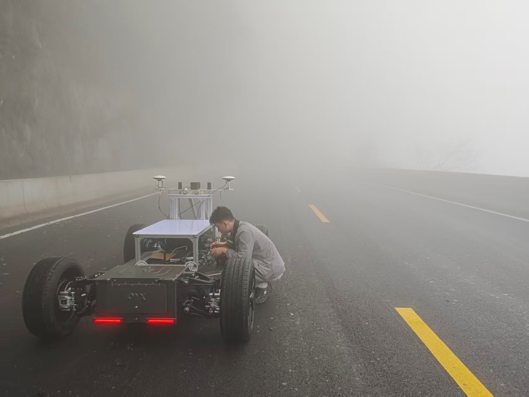 beat365官网智翼人工智能战队相比其他战队获得会务组提供的线控底盘相对较晚,为抢出更多的调试时间,队员们克服种种困难、每日最早到达赛场且最晚离开,在天门山脚下的雨棚中完成了底盘调试与各类传感器的安装。队员们紧锣密鼓地开发并调试建图、定位、规划与控制算法,成为第2支率先通过资格认证的队伍。