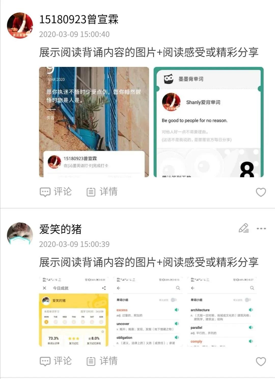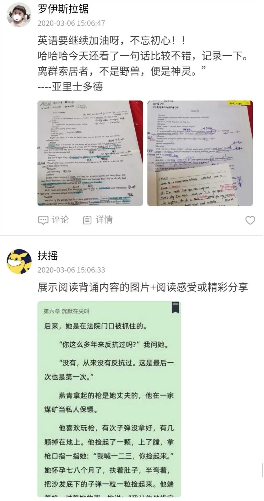 为了督促同学们在疫情期间坚持读书,提高自己的文化修养,beat365亚洲体育官方网站举办了连续十五日读书打卡活动。2020年3月9日,每日一读活动圆满结束。在本次活动期间,同学们积极响应学院号召,15天不间断,坚持读书打卡,养成了每天坚持阅读的良好习惯。