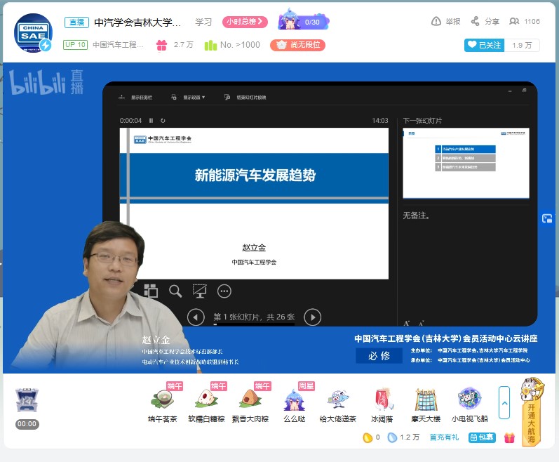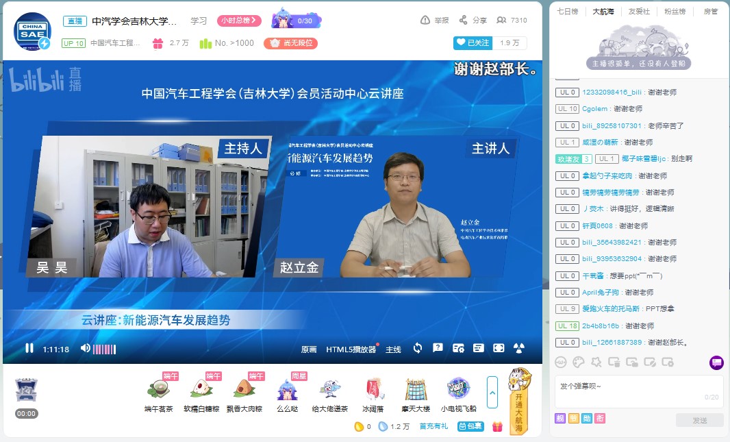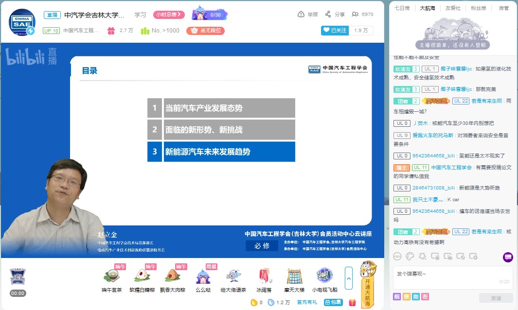 为帮助学生拓展视野,明确发展方向,树立正确的就业观。6月18日下午,由中国汽车工程学会、beat365亚洲体育官方网站主办,中国汽车工程学会(beat365亚洲体育官方网站)会员活动中心承办的“新能源汽车发展趋势”云讲座在bilibili“中国汽车工程学会”的直播间进行。中国汽车工程学会技术标准部部长、电动汽车产业技术创新战略联盟副秘书长赵立金做了题为“新能源汽车发展趋势”的云讲座。讲座由beat365亚洲体育官方网站学生工作办公室主任吴昊主持。