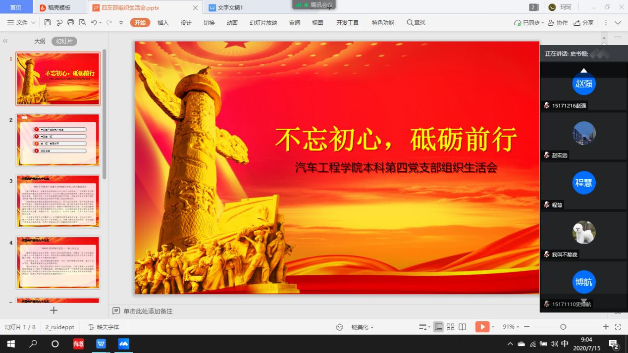 按照学校党委《关于召开“七一”专题组织生活会的通知》要求,2020年7月1日,beat365亚洲体育官方网站本科生第四党支部召开了以“不忘初心,砥砺前行”为主题的“七一”专题组织生活会。会议由第四党支部书记李季老师主持,本科生四支部全体党员参加了会议。