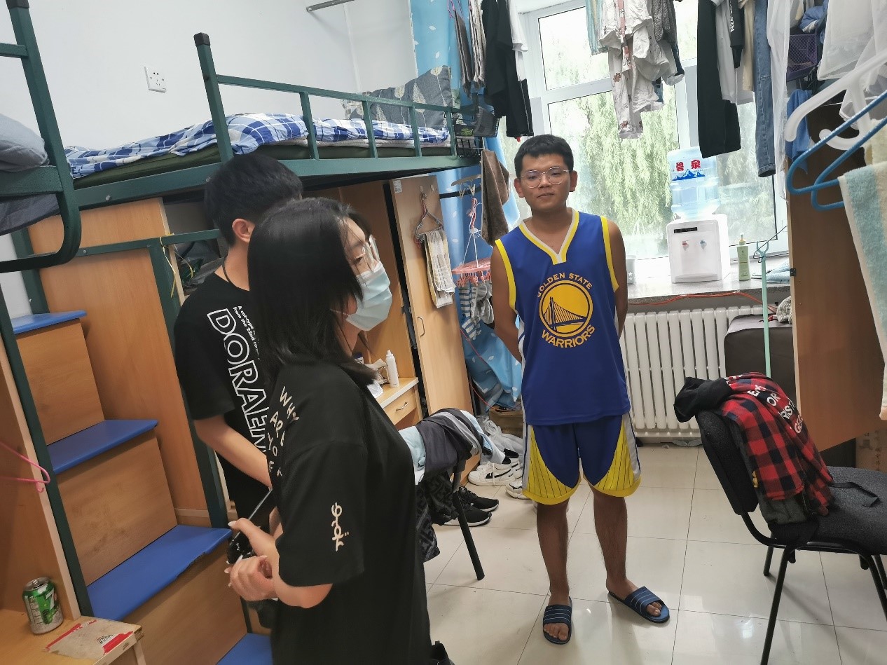 为关心同学们的健康及学习情况,督促同学们配合学校疫情防控工作,beat365亚洲体育官方网站于8月24日对南岭校区学生十三公寓进行了寝室检查,学院2019级辅导员李佳琦老师参与了查寝工作。