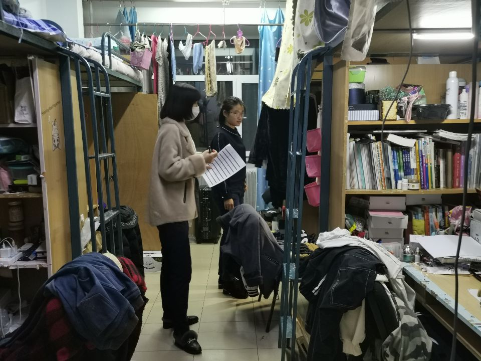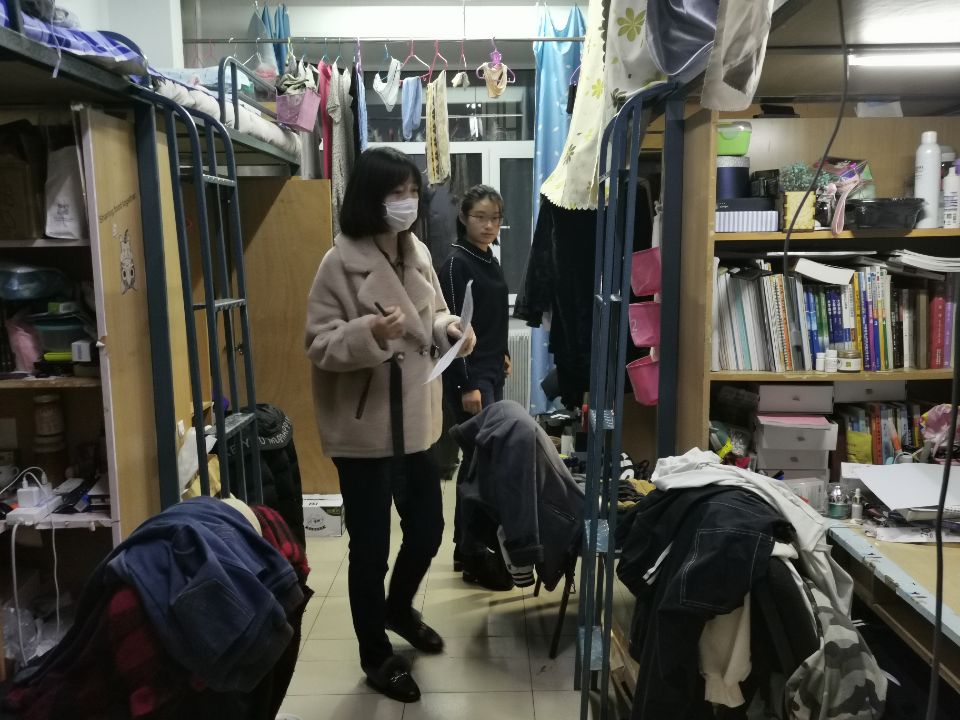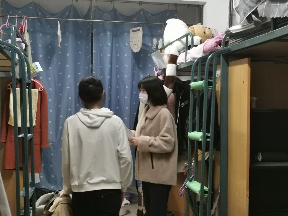 查寝时,张老师认真查看寝室卫生状况及是否有使用违规电器现象,并耐心地对在寝室的同学们提出改进之处。查寝期间,张老师不仅关注寝室整洁程度,也关注同学们的生活状态,询问学生们的学习和课余活动,关怀生病的同学,让同学们倍感温暖。张老师嘱咐同学们近期的注意事项,强调每天坚持测温打卡,注意寝室卫生,禁止使用违章电器等。在本次寝室检查过程中,均未发现违章电器使用,大部分寝室表现良好,但少数寝室卫生状况有所差距,张老师嘱咐了班长和寝室长共同督促其整改提高。