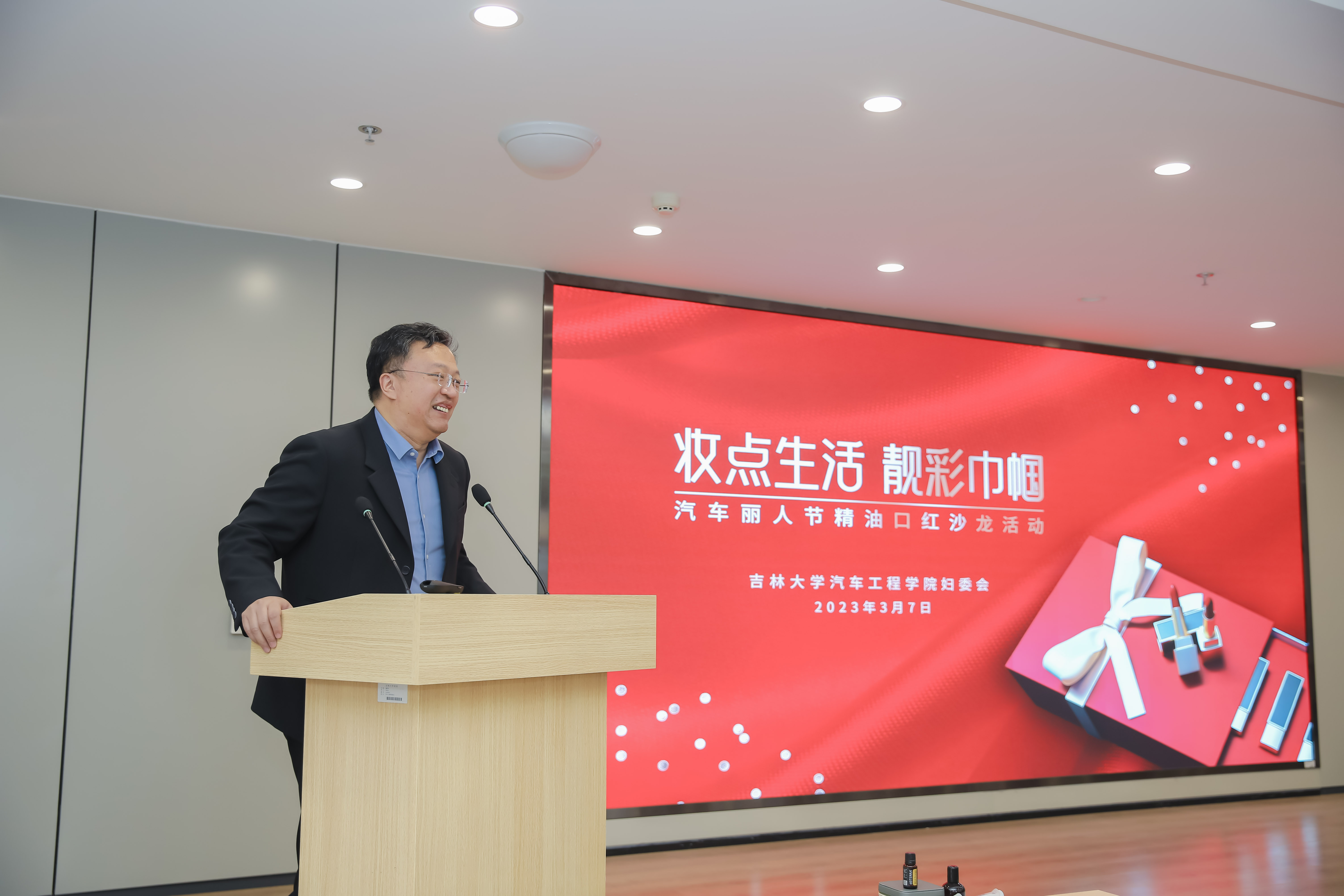 为庆祝第113个“三八”国际妇女节,beat365亚洲体育官方网站妇委会于3月7日举办了“妆点生活,靓彩巾帼”——汽车丽人节精油口红沙龙活动,邀请女教职工们在节日里亲手为自己制作一份别样的礼物。学院党委书记黄忠华、院长高振海、副院长林海兰以及女教职工参加了此次活动。活动由学院副院长、妇委会主任林海兰主持。