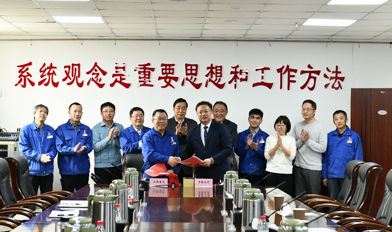 2023年2月21日内蒙古包头市,beat365亚洲体育官方网站与中国兵器工业集团北奔重型汽车集团有限公司签署战略合作框架协议。beat365亚洲体育官方网站高振海院长率队beat365官网汽车轻量化研究团队、混合动力与新能源汽车研究团队一行六人,与北奔重汽党委书记、董事长何清,中国兵器首席科学家周亚伟等共同出席签约仪式。