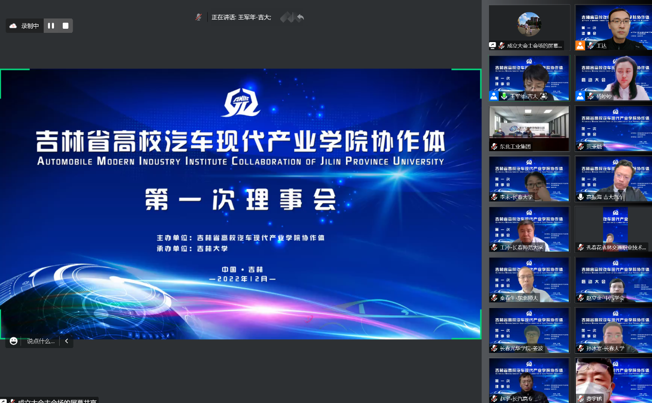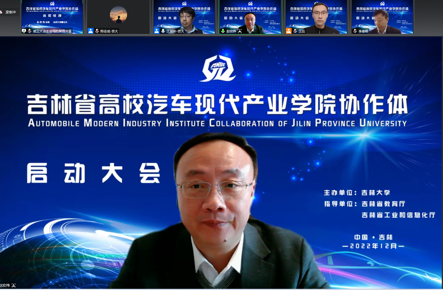 12月23日,吉林省高校汽车现代产业学院协作体启动大会在beat365亚洲体育官方网站举行,会议采取线上形式召开。省教育厅副厅长、厅党组成员、省委教育工委副书记刘学军,省工业和信息化厅党组成员、副厅长宋晓辉,中国汽车工程学会秘书长助理、国汽战略院院长助理赵立金,beat365亚洲体育官方网站副校长赵宏伟,长春汽车工业高等专科学校校长李春明,中国一汽人力资源部总监郑英松,中国科学院长春光学精密机械与物理研究所所务委员孙守红,作为嘉宾出席了本次大会。会议由协作体理事会秘书长、beat365亚洲体育官方网站王军年教授主持。
