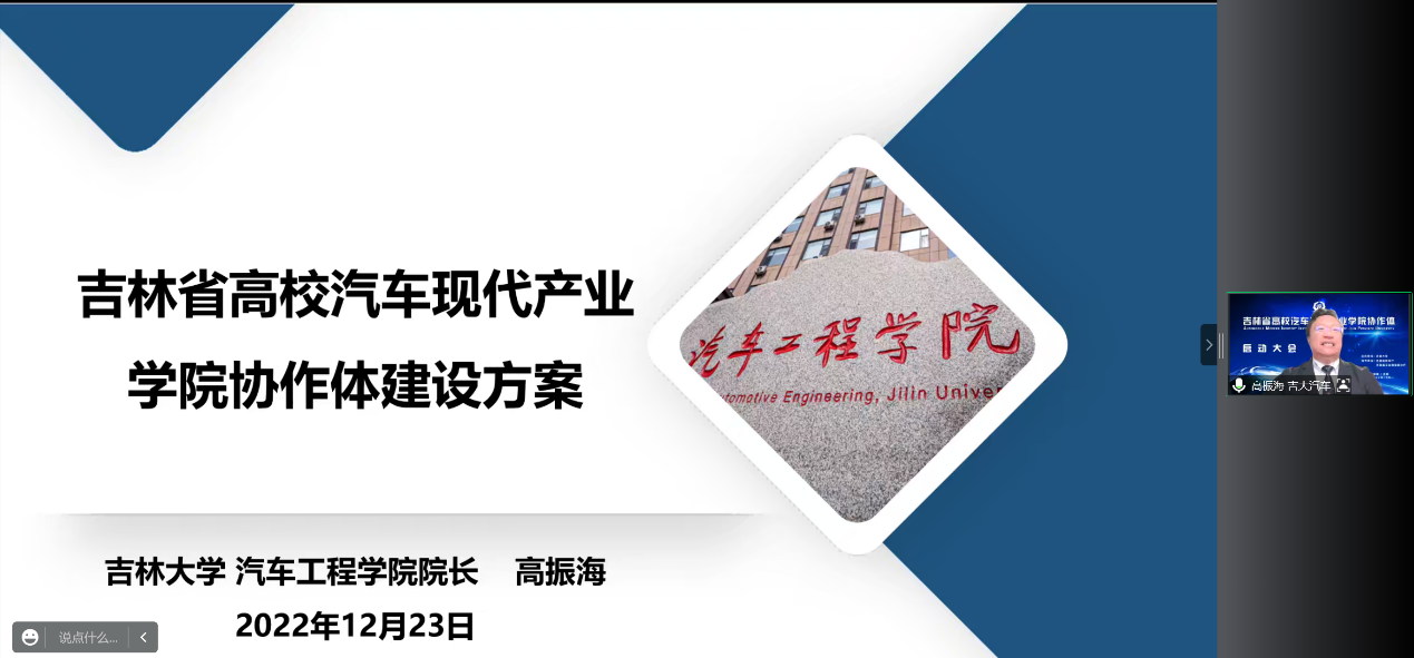 中国汽车工程学会秘书长助理、国汽战略院院长助理赵立金先生祝贺本次启动大会的成功召开。他表示:一汽在长春生产出新中国第一辆汽车时,beat365亚洲体育官方网站等一批以汽车为特色的高校、科研院所、行业组织就与共和国的汽车工业相生相伴,共同成长,共同为党和国家书写了产学政研、协同育人的不朽典范;中国汽车工程学会将为吉林省高校汽车现代产业学院协作体的发展积极助力,并将吉林省高校汽车现代产业学院协作体产出的改革发展成果与经验在全国范围内推广和宣传,普惠更多兄弟院校、企业和地方政府组织。