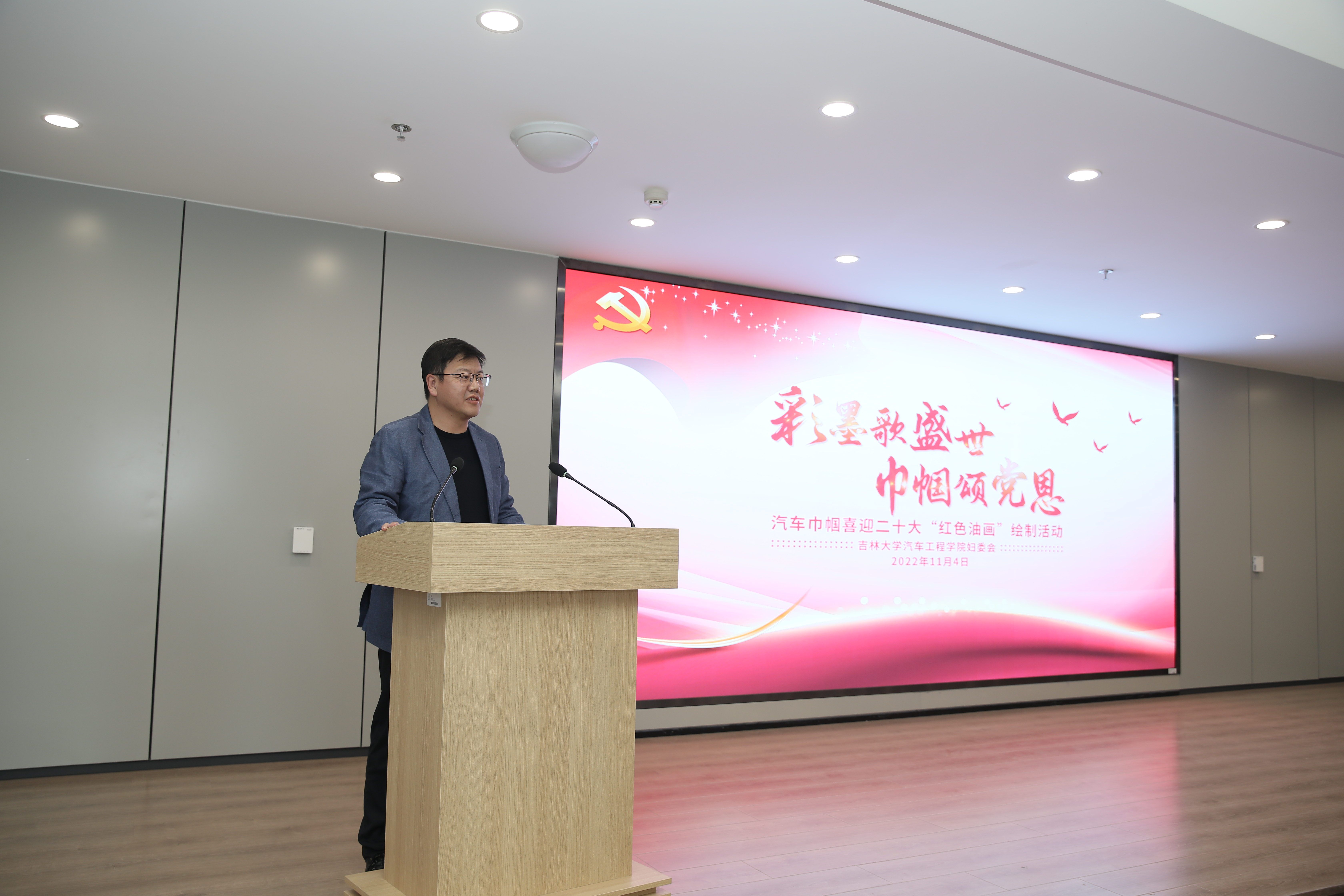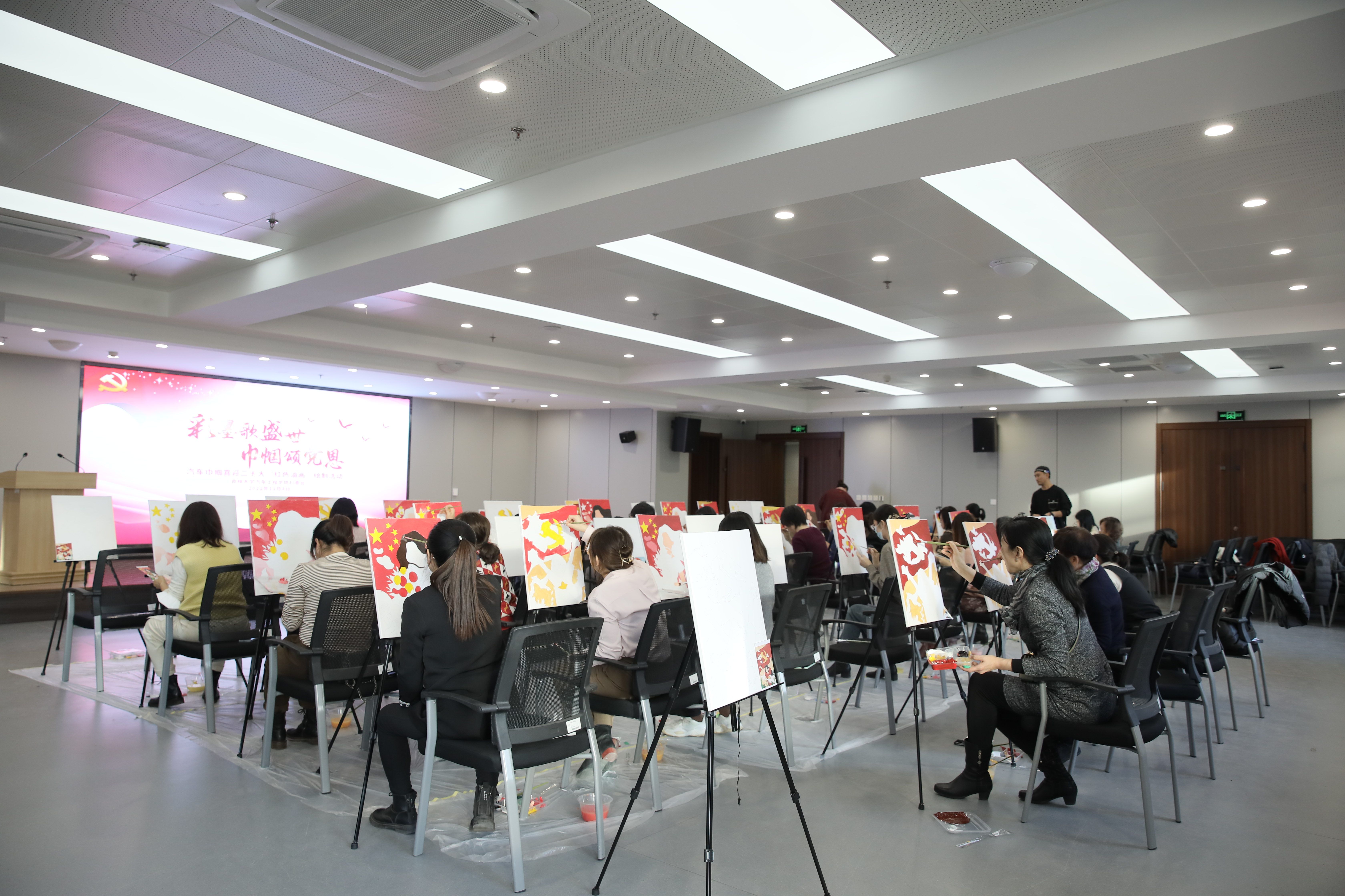 为庆祝党的二十大胜利召开,beat365亚洲体育官方网站妇委会于11月4日举办了“彩墨歌盛世,巾帼颂党恩”——汽车巾帼喜迎二十大“红色油画”绘制活动,旨在以活动强化思想引领,展现巾帼文化自信,通过挥洒彩墨抒发巾帼爱国情,通过笔下佳作诠释巾帼向党心。学院党委书记黄忠华、副书记胡忠巍、副院长林海兰以及女教职工参加了此次活动。活动由学院副院长、妇委会主任林海兰主持。